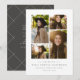 Feiern Sie Ihren Absolvent mit dieser klassischen und einfachen 4-Foto-Abschluss-Ankündigung und Graduiertenparty. Die Collage von Fotos hat Platz für zwei horizontale und zwei vertikale Bilder - ideal, um ältere Fotos zu zeigen. Der Typ unten bietet viel Platz für Namen, Schule und Jahr in Schiefergrau. Auf der Rückseite der Karte befindet sich ein passendes Schiefergrau mit einfachem Zeilenmuster und auch Platz für den Einladungstext der Graduierungsparty. Diese originelle Abschluss-Ankündigung von Lea Delaveris Design ist in verschiedenen Farben und Stilen in der Graduiertensammlung erhältlich und steht auch als Ankündigung und Einladung zum Download zur Verfügung.