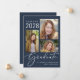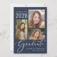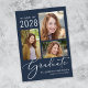 Einfache, dunkelblaue Abschluss-Ankündigung mit einer 3-Bild-Foto-Collage und "Graduate" in einem stilvollen weißen Skript. Fügen Sie den Namen, das Klassenjahr und die Schule oder Universität in der modernen weißen Typografie.