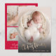 Auf der Vorderseite steht Ihr liebstes Foto zum Weihnachtsfest, das mit Ihren Namen und dem Gruß auf Frohe Weihnachten steht. Ihr Baby hat eine Geburtsstatistik und 3 Fotos auf der Rückseite. Ändern Sie die Hintergrundfarbe auf der Rückseite mit unseren Werkzeugen Bearbeiten.