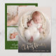 Auf der Vorderseite steht Ihr liebstes Foto zum Weihnachtsfest, das mit Ihren Namen und dem Gruß auf Frohe Weihnachten steht. Ihr Baby hat eine Geburtsstatistik und 3 Fotos auf der Rückseite. Ändern Sie die Hintergrundfarbe auf der Rückseite mit unseren Werkzeugen Bearbeiten.