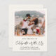 Das elegante, preisgünstige helle Creme-Ambiente oder die private Hochzeitsankündigung und die Ankündigung Datum freihalten. Die Vorderseite zeigt Ihr Foto, "Feiern Sie mit uns" in einem modernen Skript, und Ihre Namen, Empfang Datum und Ort in einfacher Typografie. Auf der Rückseite personalisieren Sie Ihre Save the Date und fügen Sie Ihre verheirateten Namen in ein signaturartiges Skript ein.