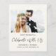 Das elegante, preisgünstige helle Creme-Ambiente oder die private Hochzeitsankündigung und die Ankündigung Datum freihalten nach der Hochzeit. Die Vorderseite zeigt Ihr Foto in einem "Mr. & Mrs." Rahmen, "Celebrate With Uns" in einem modernen Drehbuch, und Ihre Namen, Empfang Datum und Ort in einfacher Typografie. Auf der Rückseite personalisieren Sie Ihre Save the Date und fügen Sie Ihre Namen in ein signaturartiges Skript ein.