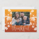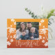Das Wort, dankbar geschrieben in wunderschönen Skripten Kalligraphie. Erntedank Fotokarten mit eleganten Herbstbäumen und Blätter Silhouette auf Herbstfarbenen Gradienten Hintergrund. Personalisieren Sie mit Ihrem Lieblings-Foto.