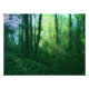 Morgensonne strömt in einen wunderschön grünen Sommerhwald mit massiven Efeu-Bäumen und einer dicken Unterbürstendecke. Ein digital manipuliertes Foto verleiht übergewachsenen Reben, blaugrünem Nebel, goldenen Rochen und Frühlingsgrün eine traumhafte Qualität verlassend.