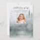 Ehre deinen Lieben mit dieser schönen Feier des Lebens Einladung. An der Vorderseite befindet sich eine handbemalte Aquarellwald-Kiefernszene mit steil aufragenden Vögeln, Ihr Foto und personalisierte Details Ihrer Feier. Die Rückseite bietet Platz für ein anderes Foto und Gedicht oder Schrift (oder löschen). Die Vorlage ist sehr einfach zu bedienen und zu ändern - eine Einladung, die einzigartig und schön ist und für immer gepflegt wird.