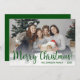 Diese hübsche Fotokarte mit Ihrem Foto, die Worte "Frohe Weihnachten!", in einem modernen Script-Schriftart in dunkelgrün und Ihrem Familiennamen und das Jahr in einem klaren, knusprigen Schriftart in dunkelgrün vorne und ein koordinierend tiefgrünes Rücken wird jedem Empfänger ein Lächeln ins Gesicht bringen. Jeder wird sich freuen, ein neues Foto von Ihnen und Ihrer Familie oder Ihren Kindern zu haben. Um diese Karte zu Ihrem eigenen zu machen, wählen Sie einfach diese Vorlage personalisieren, ein beliebtes Foto hochladen, Ihren Familiennamen hinzufügen und das Jahr. Es ist super einfach!