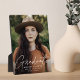 Feiern Sie die Leistung Ihres Absolventen mit einem maßgeschneiderten Abschluss-Foto-Sake. Die Foto-Plakette zeigt das vertikale Foto des Absolventen mit "Absolvent" in einem trendigen weißen Skript angezeigt. Personalisieren Sie die moderne Abschluss-Foto-Plakette, indem Sie den Namen, Schule und Abschluss Jahr.