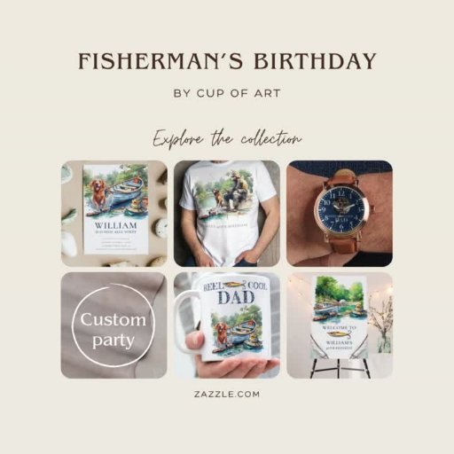 Adult Fishing Geburtstagsparty Design. Aquarellbild mit hellen Farben. Klicken Sie auf die Schaltfläche "Weitere Anpassung", wenn Sie den Stil und die Position des Textes neu ordnen und formatieren möchten. Das passende Produkt finden Sie in der Fishing Birthday Collection. Hinweis: Foto ist AI erstellt, tauschen Sie bitte mit Ihrem Foto aus.