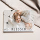 Freuen Sie sich auf stilvolle Dankbarkeit mit dieser eleganten Erntedank Foto Card. Mit einem modernen minimalistischen Layout mit einer kühlen Schlagzeile "BLESSED" und Platz für Ihr Lieblings-Foto, ist diese Karte der perfekte Weg, um warme Urlaubswünsche zu erfüllen. Personalisieren Sie sich mit Ihrem Familiennamen, der benutzerdefinierten Botschaft und dem gepflegten Bild, um einen einzigartigen Sake zu schaffen. Ideal für Erntedank-Ansammlungen, Feiern mit Freunden oder einfach nur Liebe und Dank an Freunde und Verwandte. Diese Fotokarte ist auf hochwertigem Papier mit raffiniertem Finish gedruckt und bietet eine zeitlose Möglichkeit, die Freude dieser Feriensaison zu verbreiten.