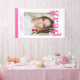 Foto Graduation Party Elegant Modern Script Banner Party Sign Feature Ihr Lieblings-Foto mit dem einfachen rosa Text "Grad (Jahr)" und Ihren Namen und personalisierte Abschluss Details auf der Vorderseite. Perfekt für den Absolvent als Abschluss Geschenk oder Abschlussfeier Dekor. Erstellt von ©Evco Studio www.zazzle.com/store/evcostudio