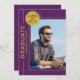 Foto Graduation Party Modernes Script Lila Gold Einladungen bieten Ihr Lieblings-Foto mit dem einfachen Text "Graduate" und Ihre Graduate Party Einladung Informationen auf der Rückseite. Personalisieren Sie diese, indem Sie den Text in den bereitgestellten Textfeldern bearbeiten und Ihr bevorzugtes Foto hinzufügen. Erstellt von ©Evco Studio www.zazzle.com/store/evcostudio