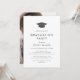 Diese schicke Graduiertenparty lädt zu einem modernen Party im Freien ein. Das Foto ist ein absolutes Muss. Das schlichte Design zeichnet sich durch eine klassisch minimalistische Schwarz-Weiß-Typografie mit schwarz-goldfarbenem Abschluss-Hut aus. Kombinieren Sie Ihre Gradationsankündigung und Party Einladung mit dieser Vorder- und Rückenkarte.