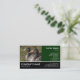 Eine Visitenkartenvorlage mit einer Schwarz-weißen Fußleiste mit einem oberen Bereich, der mit einem Foto und einem Textfenster maskiert ist. Foto oder Kunstwerk Bild auf dem verlassen (das auch durch Ihr eigenes Foto ersetzt werden kann) mit einem Panel für Namen und Details auf der rechten Seite. Platz für den Firmennamen am links Fuß mit Telefonnummer, Web und E-Mail-Kontaktdaten auf dem verlassen. Kann auch für andere Zwecke angepasst werden. Hinweis: Der Foto-Bereich ist maskiert, wenn Sie das Bild ersetzen, müssen Sie möglicherweise die Größe Ihres Fotos anpassen.