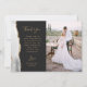 Schicken Sie Ihrer Familie und Ihren Freunden einen besonderen Hochzeitsdanken mit diesen maßgeschneiderten Fotokarten. Auf der links erscheinen die Worte "danke" in eleganter goldfarbener Schrift Typografie auf schwarzem Schiefer-Hintergrund über eine kurze, bearbeitbare Botschaft des Dankes an Ihre Hochzeitsgäste in Copperplate-Schriftart, mit Ihren Namen unten. Ein grau-weißer Wasserfarbenstreifen mit vergoldetem Imitat schmückt den links Rand. Die Rückseite bietet Platz für ein zweites, horizontales Foto.