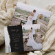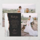 Schicken Sie Ihrer Familie und Ihren Freunden einen besonderen Hochzeitsdanken mit diesen maßgeschneiderten Fotokarten. Auf der links, die Worte "danke" erscheinen in eleganten Rose-farbenen Handschrift Schrift Typografie auf einem schiefen schwarzen Hintergrund über eine kurze, bearbeitbare Botschaft des Dankes an Ihre Hochzeitsgäste in Copperplate Schriftart, mit Ihren Namen unten. Ein grau-weißer Wasserfarbenstreifen, der mit Imitaten beschnitten wird, Rose Gold Glitzer schmückt den links Rand. Die Rückseite bietet Platz für ein zweites, horizontales Foto.