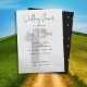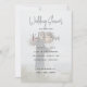 Polterabend Einladungen mit dem Foto des Paares als Hintergrund. Neutrale Grautöne für Text mit großen handgeschriebenen Schriftzeichen für Party- und Paarnamen. Laden Sie Ihr Foto hoch, das durch ein überlagertes, durchsichtiges Weiß gedämpft wird. Das Gegenteil ist schwarz mit einem Muster winziger Herzen.