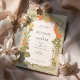 Diese exquisite Hochzeitseinladungskarte ist ein Beleg für klassische Eleganz und zeitloses Design. Das auf hochwertigem texturiertem Papier gedruckte Einladungspapier zeichnet sich durch ein aufwändiges botanisches Motiv aus, das den Inhalt elegant umrahmt. Reiche, warme Farbtöne tanzen über die Karte, die Farbtöne verbrannten Orangen, Senfgelb und olivgrün erinnern an die visuelle Melodie des Herbstes. Das Design verbindet verschiedene Blumenmuster und Blätter und vermittelt den Eindruck eines üppigen Gartens der Erntezeit.