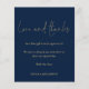 Eine günstige BUDGET-Alternative für eine kleinere Größe von 4,5 x 5,6 Zoll, die ein Gewicht von 110 lbs hat, die ähnlich dick ist wie eine Postkarte (sie ist jedoch nicht als Postkarte geeignet). BITTE BEACHTEN SIE, DASS ES EINE pro Blatt gibt. Budget Foto Hochzeit Liebe und Dank Script Navy und Gold. Ein minimalistisches Typografie-Design mit einem Set-Stilskript für Liebe und Danke. Auf der Rückseite ersetzen Sie das Beispielbild mit Ihrem eigenen Favoriten aus Ihrem Tag, um Ihre Gäste zu schützen. Personalisieren Sie die Erholung des Textes einfach mit Ihrer Nachricht und Ihren Namen.