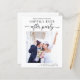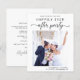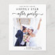 Moderne, preisgünstige Ankündigung Datum freihalten für Ihren Post-Ever oder privaten Hochzeitsempfang mit Ihrem Foto "Save the Date für unser glückliches Ever After Party" in einer Mischung aus einfacher Typografie und einem trendigen Drehbuch mit Schlagwörtern und Ihren Vornamen, Empfang und Ort. Geben Sie auf der Rückseite weitere Details an und fügen Sie Ihre Namen in ein signaturartiges Skript ein.