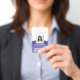Repräsentieren Sie Ihr Unternehmen stilvoll, indem Sie den Mitarbeitern moderne und berufliche Identifizierungssysteme anbieten. Das Logo, das Foto, der Bar und alle Formulierungen auf dieser Vorlage sind einfach zu verändern. Das lila und weiße Design zeichnet sich durch einen farbenfrohen Farbverlauf mit einem eleganten Bogen aus, Ihr Firmenlogo, ein quadratisches Bild, Mitarbeitername und Titel, und UPC/Strichcode auf der Rückseite. Es bietet die Organisation und Sicherheit für die Mitarbeiter des Unternehmens und präsentiert das Corporate Branding mit einem stilvollen klassischen Aussehen.