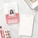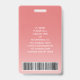 Repräsentieren Sie Ihr Unternehmen stilvoll, indem Sie den Mitarbeitern moderne und berufliche Identifizierungssysteme anbieten. Das Logo, das Foto, der Bar und alle Formulierungen auf dieser Vorlage sind einfach zu verändern. Das rosa und weiße Design zeichnet sich durch einen ombre Farbverlauf mit einem eleganten Bogen, Ihr Firmenlogo, ein quadratisches Bild, Mitarbeitername und Titel, und UPC / Strichcode auf der Rückseite aus. Es bietet die Organisation und Sicherheit für die Mitarbeiter des Unternehmens und präsentiert das Corporate Branding mit einem stilvollen klassischen Aussehen.