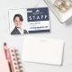 Ein Business-ID-Abzeichen für Unternehmen mit persönlichem Foto, Firmenlogo und Firmennamen. Es enthält auch eine Kategorie zur Identifizierung von Mitarbeitern, Besuchern oder Gästen. Außerdem enthält es einen Personennamen und Beruf sowie einen optionalen Identitätscode. Dieses Corporate Foto Abzeichen Identifizierungskarte ist ideal für alle Unternehmen, die dort Mitarbeiter, Besucher oder Gäste identifizieren möchten.