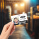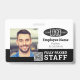 Laden Sie einfach Ihr Firmenlogo, Foto der Mitarbeiter und QR Code hoch. Gut für alle Geschäfte. Foto-ID QR Code Schwarz-weißes Abzeichen.