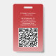 Repräsentieren Sie Ihr Unternehmen stilvoll, indem Sie den Mitarbeitern moderne und berufliche Identifizierungs-Foto-Abzeichen liefern. Das Logo, das Foto, der QR-Code und alle Formulierungen auf dieser Vorlage sind einfach zu verändern. Um Ihren eigenen QR-Code mit dem Generator zu erstellen, geben Sie einfach die URL der Website in die Vorlage ein. Das Design verfügt auch über einen roten Farbverlauf mit einzigartigen gebogenen Bögen, Ihrem Firmenlogo, einem quadratischen Bild, dem Namen und dem Titel der Mitarbeiter. Es eignet sich als Marketing-Werbemittel oder als Zugangskarte für eine Veranstaltung, wie z.B. eine Konferenz, ein Konzert, ein Festival oder ein Vip-Party. Es bietet die Organisation und Sicherheit für die Mitarbeiter des Unternehmens und präsentiert das Corporate Branding mit elegantem und klassischem Erscheinungsbild.