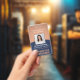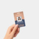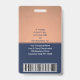 **Bitte beachten Sie, dass der Hintergrund so gedruckt ist, dass er metallisch aussieht, das Produkt jedoch nicht aus Metall und nicht aus Folie ist.** Repräsentieren Sie Ihr Unternehmen stilvoll, indem Sie den Mitarbeitern moderne und berufliche Identifizierungssysteme anbieten. Das Logo, das Foto, der Bar und alle Formulierungen auf dieser Vorlage sind einfach zu verändern. Das Design ist mit einem Imitat aus metallischem Kupfer-Hintergrund mit einem eleganten marineblauen gebogenen Lichtbogen, Ihrem Firmenlogo, einem quadratischen Bild, Mitarbeitername und Titel sowie UPC/Strichcode auf der Rückseite ausgestattet. Es bietet die Organisation und Sicherheit für die Mitarbeiter des Unternehmens und präsentiert das Corporate Branding mit einem stilvollen klassischen Aussehen. Bitte beachten Sie, dass Kupfer farbig gedruckt ist, nicht metallisch.