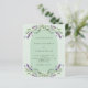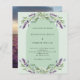 Weiß grüner Hintergrund mit lila Lavendel-Blume, Eukalyptusgrün und Bogenrahmen. Personalisieren und Ihre Namen und Details. Zurück: Personalisieren Sie Ihr Foto und fügen Sie es hinzu. 1 Blatt = 1 Einladung mit Druckkante bis Kante.