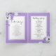 Foto Lila florale Hochzeitsprogramm erstellt von szdesign. Das Design umfasst lila, sanfte lila und weiße Blume, die in "Corner Style" vereint sind. Auch diese schöne lila Farbe wird zum Färben von Seiten verwendet. Dieses Hochzeitsprogramm gibt mehr Gelegenheit, sich über die Einzelheiten der Zeremonie zu informieren, und es ist auch hübsch einfacher, das Foto des Ehepaares vor das Programm zu stellen. "Beide Seiten" des Innenraums ist ideal für Text, und die Rückseite für den Dank an alle Ihre Gäste. Falls Sie Hilfe benötigen, kontaktieren Sie uns bitte über den Zazzle Chat.