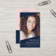 Moderne, vertikale Visitenkarten mit Ihrem Namen und Titel auf der Vorderseite und anpassbare Vorlagenfelder für Ihre Kontaktinformationen, Logo und QR-Code auf der Rückseite. Dunkelblau und rosa oder Sonderfarben. Sie können Hintergrund- und Schriftart-Farben ändern, Elemente verschieben und verändern.