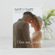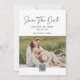 Diese bearbeitbare Save the Date Vorlage ist eine moderne Hochzeitsankündigung in Schwarz-Weiß-Foto mit minimalistischer Typografie, ideal für Paare, die ein stilvolles und leicht zu personalisierendes Design suchen.