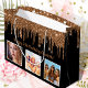 Für einen 50. Geburtstag (oder jedes Alter). Ein eleganter schwarzer Hintergrund. Mit Imitaten Gold Glitzer Tropfen, Farbe tropfen aussehen. Personalisieren und fügen Sie 3 Ihrer eigenen Fotos, ein Datum, Name und Alter 50. Goldener Text. Der Name ist mit einem modernen handgeschriebenen Stilskript geschrieben.