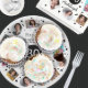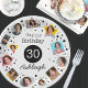 Eine unterhaltsame Collage aus 12 konfetti geformten personalisierten Fotos für einen 30. Geburtstag Papier-Teller mit einem individuellen Namen, um Ihnen alle Leckereien zum Geburtstag zu servieren. Kühne Grafik von Konfetti in Dreiecken, Ovalen, Rechtecken, Kreisen und Quadraten in Schwarz und Weiß. Fügen Sie der Feier die Persönlichkeit des Geburtstags hinzu.