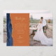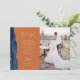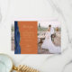 Schicken Sie Ihrer Familie und Ihren Freunden einen besonderen Hochzeitsdanken mit diesen maßgeschneiderten Fotokarten. Auf der links erscheinen die Worte "danke" in eleganter goldfarbener Schriftzeichen-Typografie auf einem verbrannten orangen oder rostfarbenen Hintergrund, über eine kurze, bearbeitbare Dankesbotschaft an Ihre Hochzeitsgäste in Kupferplatte Schriftart, mit Ihren Namen unten. Ein marineblauer Aquarellrahmen mit Imitaten bestickt mit goldenem Glitzer schmückt den verlassen Rand. Die Rückseite bietet Platz für ein zweites, horizontales Foto.