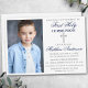 Moderne Elegant Blau und Silber Erste Heilige Kommunion Einladung mit Kreuz und Foto.