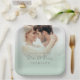 Moderne Foto Overlay Glückwünsche an die neue Mr. Sage Green. Minimalistische Eleganz für Ihre Hochzeitstische, mit einem stilvollen Set-Set-Skript für Mr. und Mrs. und die Erholung des Textes kann leicht personalisiert werden. Ersetzen Sie das Foto der Probe durch Ihren eigenen Favoriten, der sich hinter einer abgestuften, getönten Schicht befindet, die nach unten abblendet, wobei die Wörter teilweise überlagert sind.