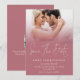 Modernes Foto Overlay QR Code Rose Gold White Script Hochzeit. Mit einem QR-Code auf Ihrer Hochzeitswebsite auf der Rückseite, sodass Ihre Gäste leicht Ihre Hochzeitswebsite besuchen können. Ihr QR-Code wird automatisch generiert, um den Beispielcode im Design zu aktualisieren, wenn Sie einfach die Beispiel-URL in der Vorlage mit Ihrer eigenen Hochzeitswebsite-URL ändern. Save the Date ist in einem stilvollen Set-Skript. Ersetzen Sie das Beispieltext-Foto durch Ihren eigenen Favoriten und personalisieren Sie die Erholung des Textes.