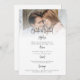 Verfügbar in gedruckter oder digital. Foto Overlay Script Boho Wedding Menu Card Ein vollständig anpassbares minimalistisches Design mit Ihrem Foto hinter einer abgestuften, getönten Ebene, Ihren Namen und Menüdetails. Einfach mit Ihrem Lieblings-Foto und Ihren Wörtern personalisieren.