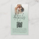 Foto Overlay Script QR Code Hochzeitssage Details. Klein und bequem zu umschließen mit Ihren Einladungen. Bitte laden Sie Ihre Gäste ein, alle Informationen, die sie benötigen, wie Unterkunft und Anfahrtsbeschreibung über Ihren QR-Code zu Ihrer Hochzeitswebsite zu sehen. Dieses moderne schlanke grüne Design mit Ihrem Lieblingsfoto hinter einer abgestuften, getönten Schicht, hat ein informelles Set Typografie in schwarz für die Hauptüberschrift Details und die Erholung des Textes, die Sie leicht personalisieren können. Ersetzen Sie das Beispiel-Foto durch Ihren eigenen Favoriten der Landschaftsorientierung.