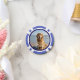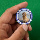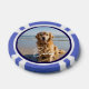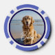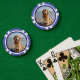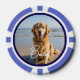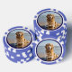 Foto personalisierte Poker Chips. Ersetzen Sie das Foto durch Ihr eigenes und ändern Sie den Text. Leicht zu erledigen von der Produktseite. Weißes Skript mit Foto und blauem Hintergrund.