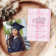 Foto Coquette Pink Bow Abschluss Einladung Feiern Sie Ihren Abschluss mit Stil und Eleganz mit dem Foto Coquette Pink Bow Abschluss Einladung. Mit einer zarten rosa Bogen-Illustration, sanften Pastelltönen und raffinierter Typografie verbindet diese Einladung Raffinesse mit einer femininen Touch. Ein personalisiertes Foto fügt ein einzigartiges und persönliches Element hinzu und ist somit die perfekte Möglichkeit, Ihren besonderen Tag zu verkünden. Features: Chic Coquette Ästhetik - Design mit einem zarten rosa Bogen und weichen, romantischen Details für einen zeitlosen Look. Personalisiertes Foto - Zeigen Sie Ihr Lieblings-Abschluss-Portrait für eine wirklich maßgeschneiderte Touch. Elegante Typografie - Ein ausgeklügeltes Schriftart-Layout, das den raffinierten Stil der Einladung unterstreicht. Premium Qualität - Auf hochwertigen Kartons bedruckt für eine luxuriöse und berufliche Ausführung. Benutzerdefinierbare Details - Personalisieren Sie Ihre Daten mit Ihrem Namen, Abschluss, Schule und Veranstaltungsinformationen. Digital & Print Options - Wählen Sie eine druckbare Version oder lassen Sie sie professionell drucken und ausliefern. Diese Einladung eignet sich perfekt für ein anspruchsvolles und dennoch spielerisches Abschluss-Fest und Set für ein unvergessliches und stilvolles Event. Bestellen Sie jetzt, um eine Touch von Coquette-Charme zu Ihrem Abschluss Ankündigung hinzuzufügen.
