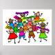 Niedlicher Cartoon skurrile Illustration einer Gruppe glücklicher und vielfältiger kleiner Jungen und Mädchen, die winkend und lächelnd winkten. Einfach anpassen und Ihre eigene Hintergrundfarbe auswählen oder Text hinzufügen. Bilder auf verschiedenen Geschenken und Produkten erhältlich.