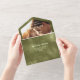 Mit diesem schicken Olive and Sage Shimmer Line Background Themed Wedding Einladung mit modernem Komfort laden Sie Ihre Lieben ein. Dieses All-in-One-Template für die Hochzeitseinladung bietet einen Olive- und Sage-Hintergrund mit glitzernden Zeilenakzenten. Passen Sie den Text an, fügen Sie einen QR-Code, Foto und fügen Sie Ihre Website und E-Mail für eine einfache, aber elegante All-in-One-Hochzeitseinladung ein. Perfekt für das stilbewusste Paar, das ein einzigartiges und funktionales Einladungs-Design sucht.