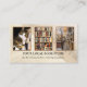 Visitenkarte mit eigenen Fotos, die durch ein verschwommenes Buch-Hintergrundedesign gerahmt sind. Auf der Rückseite können Sie die QR-Codevorlage einfach anpassen (oder löschen). Ideal für einen (gebrauchten oder anderen) Buchladen oder einen Schriftsteller oder Romanautor. (Sie können auch Fotos Ihrer neuesten Buchcover hinzufügen!)