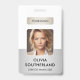 Ein modernes und elegantes Corporate ID Abzeichen, das in einer silberfarbenen Palette entworfen wurde. Einfach mit Foto, Namen, Jobtitel, Firmenlogo, QR-Code und anderen Geschäftsdetails anpassbar. Das Layout zeichnet sich durch eine übersichtliche Typografie aus, die ein berufliches und übersichtliches Erscheinungsbild ermöglicht und eine einfache Identifizierung ermöglicht. Dieses ID-Abzeichen ist mit Optionen für einen Lanyard, eine Metallklammer oder einen einziehbaren Halter erhältlich. Keine Mindestbestellung erforderlich.