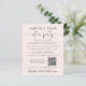 Elegantes und preiswertes hellrosa Ambiente oder private Hochzeitsankündigung und Hochzeitsempfang. Die Vorderseite zeigt "Happily Ever After Party" in einfacher Typografie und ein stilvolles Drehbuch mit Swashes. Passen Sie Ihre Ankündigung und Einladung an, erstellen Sie einfach einen QR-Code, der mit Ihrer Hochzeitswebsite verknüpft ist, damit Ihre Gäste mehr Informationen und UAWG online suchen und Ihre Namen in einem signaturähnlichen Skript hinzufügen können. Auf der Rückseite finden Sie Ihr Lieblings-Foto, Ihre Vornamen und Ihr Hochzeitstermin.