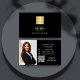 Ein schwarzer Hintergrund mit weißem und goldenem Text. Personalisieren und fügen Sie Ihr Firmenlogo, Monogramm-Initialen, Vornamen und vollständigen Namen auf der Vorderseite. Zurück: Vorlagen für Ihr Profil Foto, Name, Titel, Telefonnummer, E-Mail, Website-Adresse, Ihren eigenen qr-Code für Ihre Website oder Social-Media-Konto.