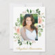 Moderne Elegante Quinceanera Wasserfarben Rosa Blütenfarben Rose und Botanische Vegetation Gold Foto Einladungskarte
